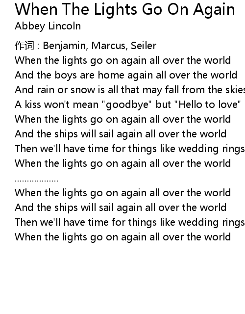 | When the lights go on again all over the world |