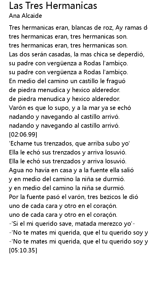 | [00:15.00] | tres hermanicas eran, tres hermanicas son. |