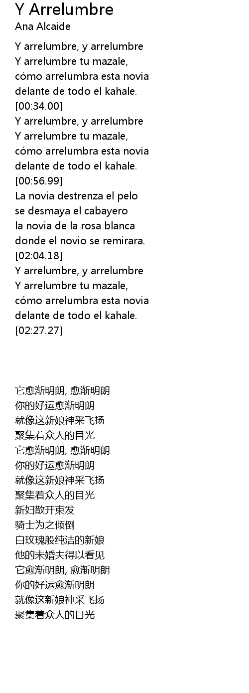 | [00:34.50] | Y arrelumbre, y arrelumbre |