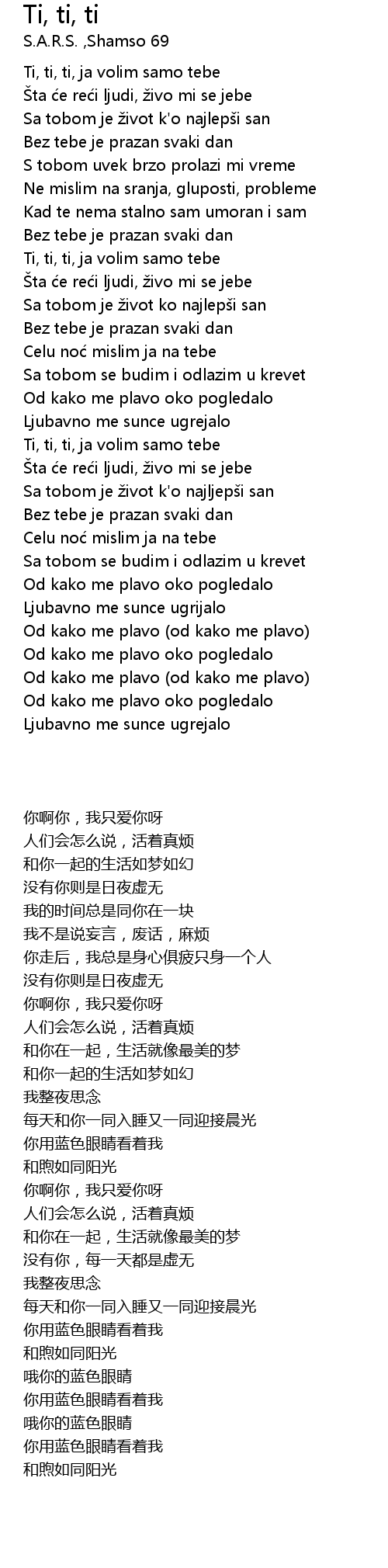 | [00:31.00] | Ti, ti, ti, ja volim samo tebe |