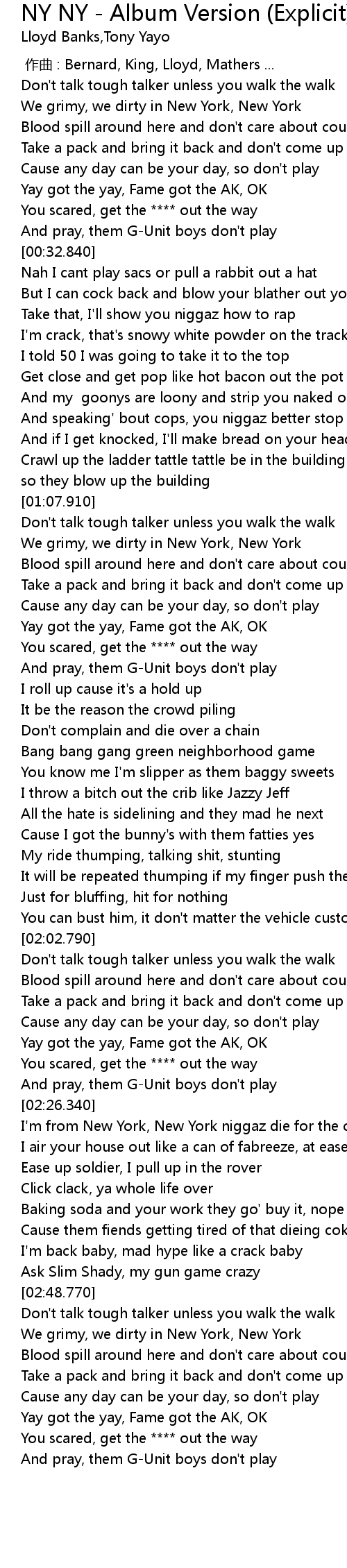 | Song | NY NY - Album Version (Explicit) |