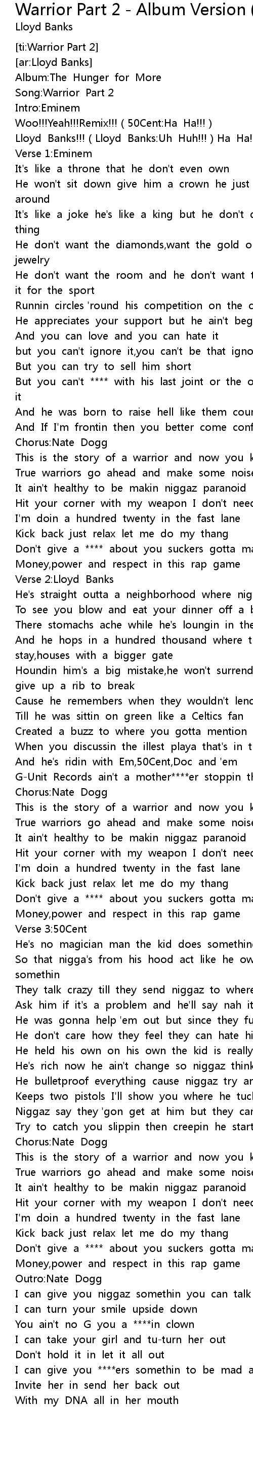 | [00:41.676] | G-Unit Records ain't a mother****er stoppin them |