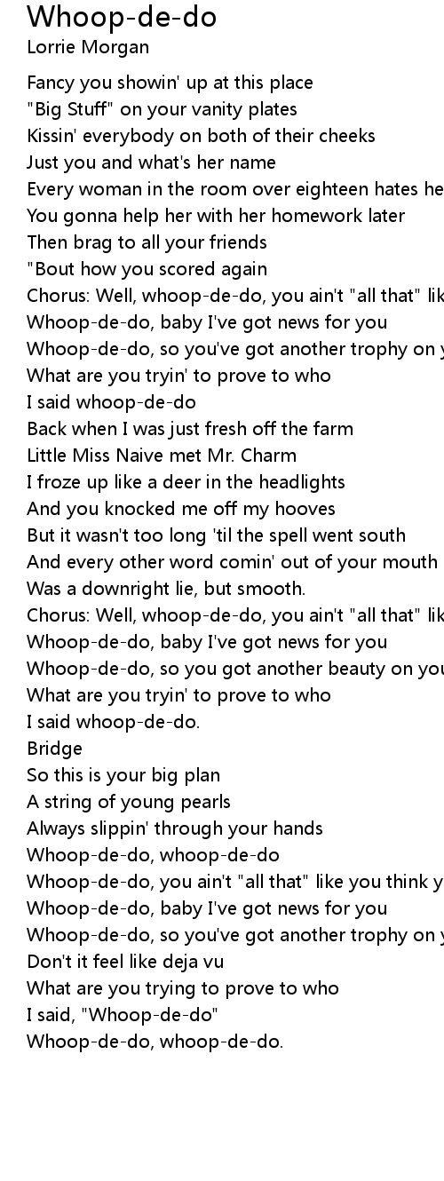 Chorus: Well, whoop-de-do, you ain't "all that" like you think you are |