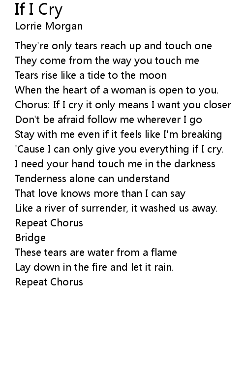 Chorus: If I cry it only means I want you closer |