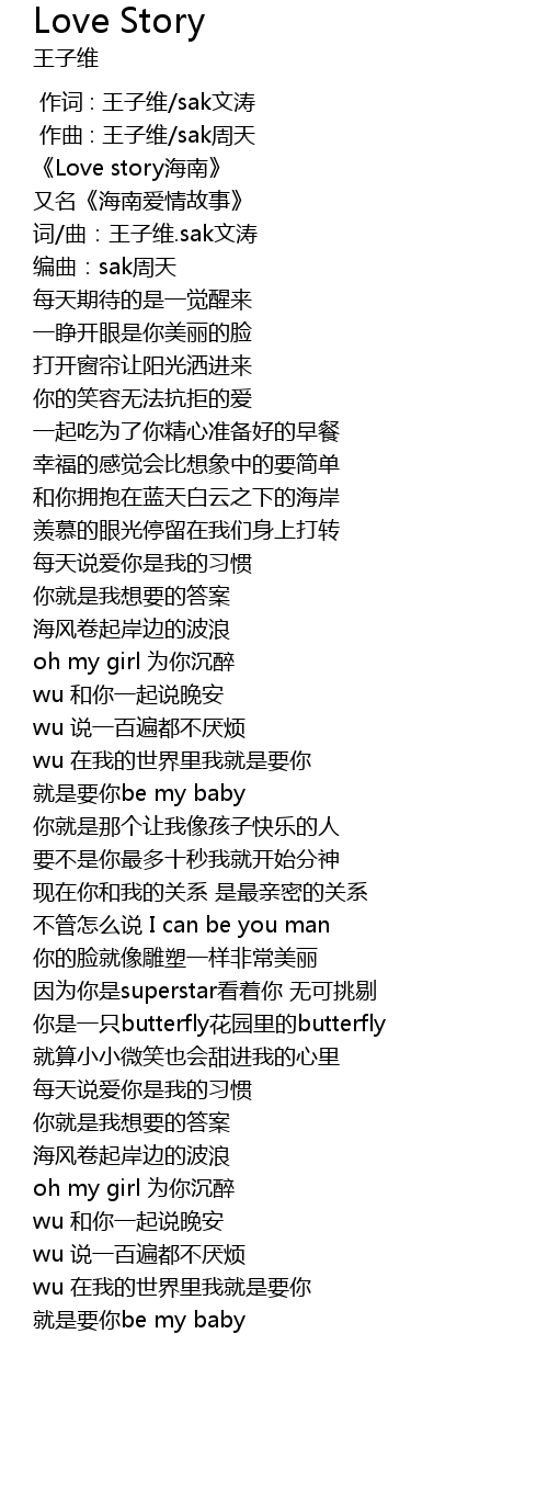 | [00:01.941] | Love story hai nan |