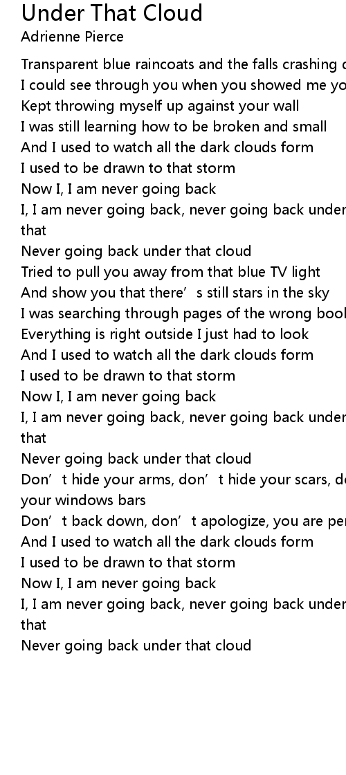 | I, I am never going back, never going back under, never going back, can’t do that | |