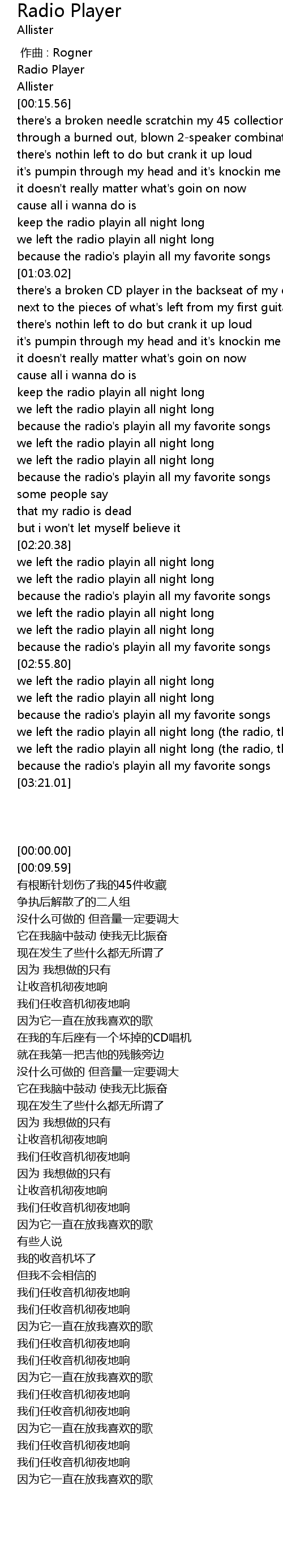 | [02:09.86] | that my radio is dead |