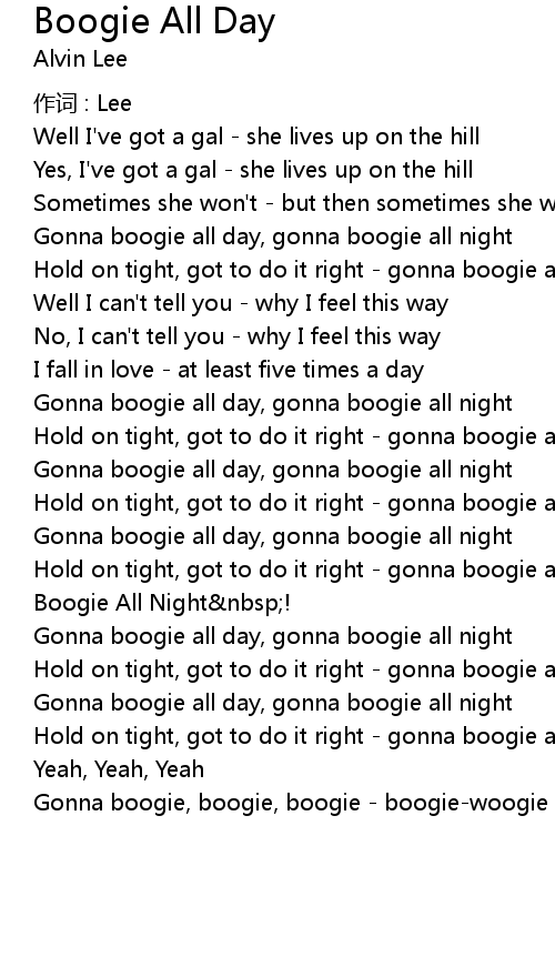 | Gonna boogie all day, gonna boogie all night | |