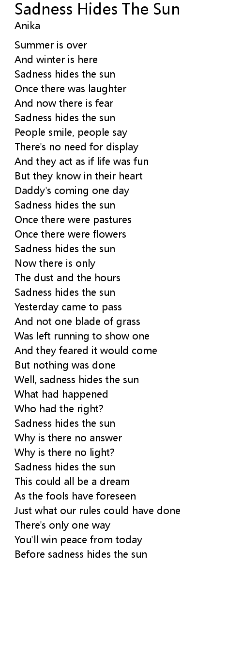 | Well, sadness hides the sun | |