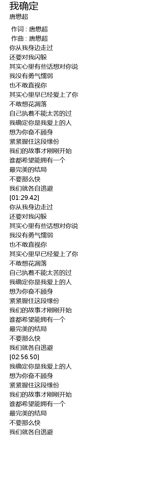 | [02:31.10] | wǒ què dìng nǐ shì wǒ ài shàng de rén |