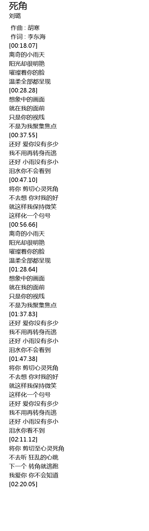 | [02:11.39] | 将你 剪切至心灵死角 |