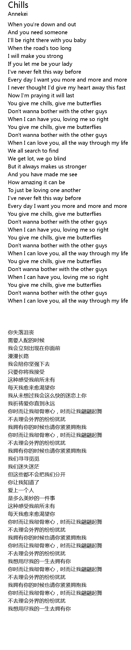 | [02:33.010] | You give me chills, give me butterflies |