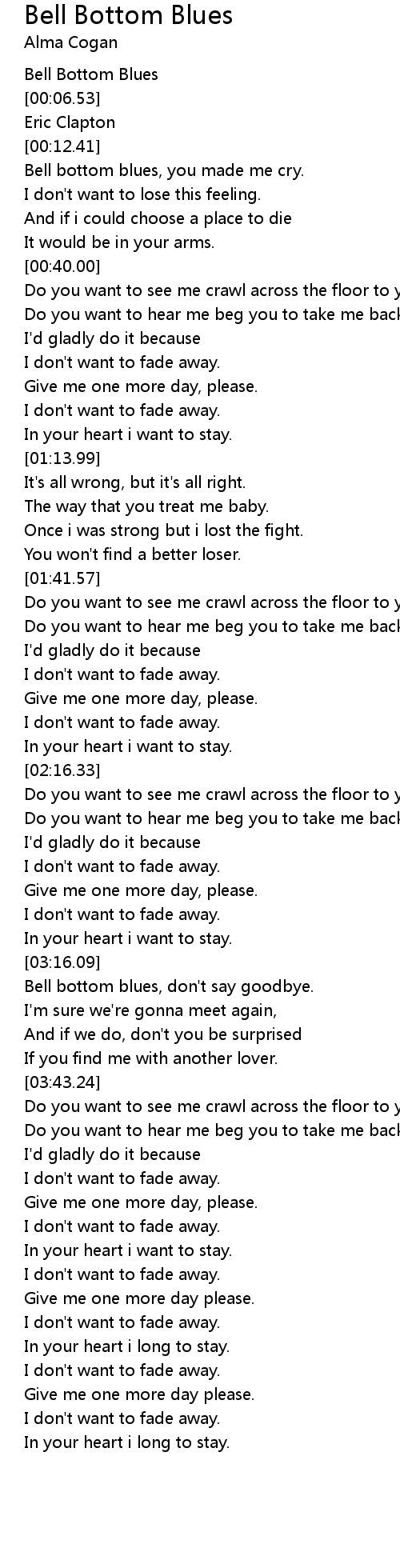 Bell bottom blues, don't say goodbye. |