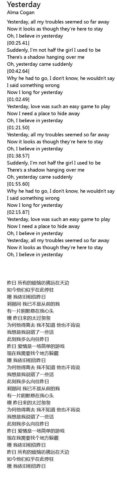 Yesterday, all my troubles seemed so far away |