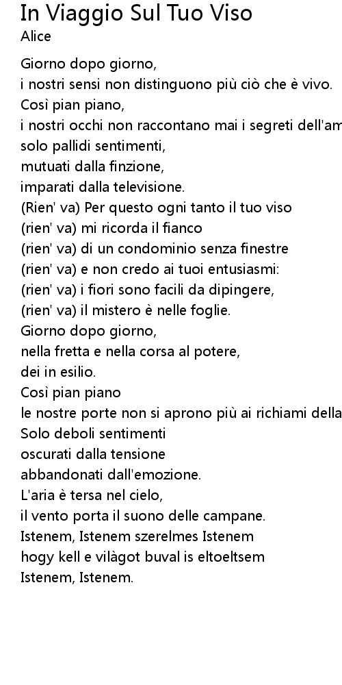 | Song | In Viaggio Sul Tuo Viso |