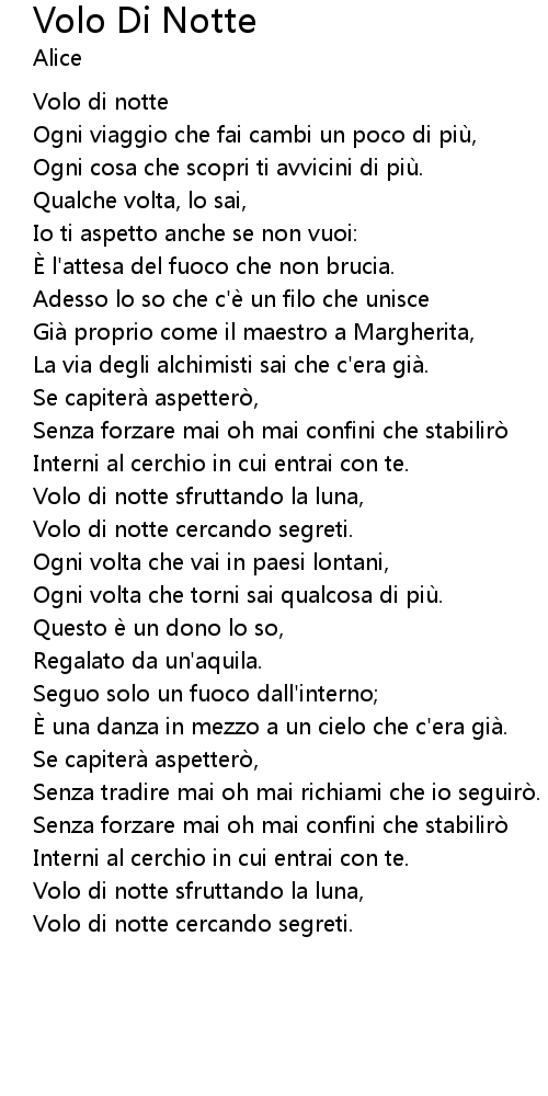 | Song | Volo Di Notte |