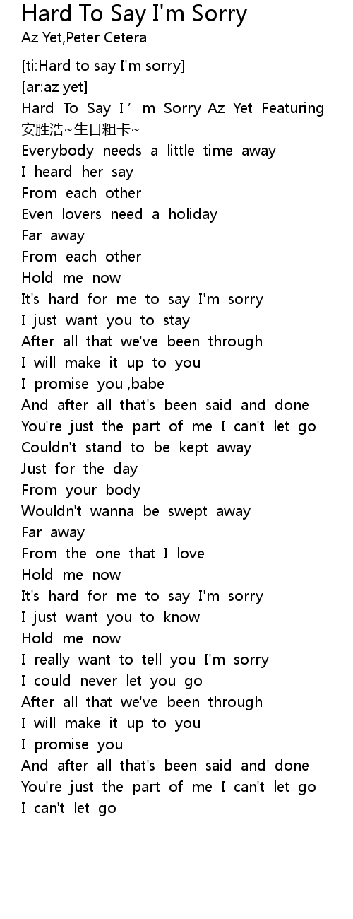 | [00:03.880] | Hard To Say I ’m Sorry_Az Yet Featuring |