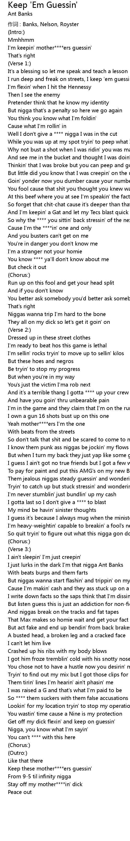 | Keep these mother****ers guessin' | |