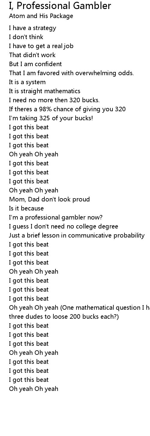Oh yeah Oh yeah (One mathematical question I have is: How long does it take three dudes to loose 200 bucks each?) |