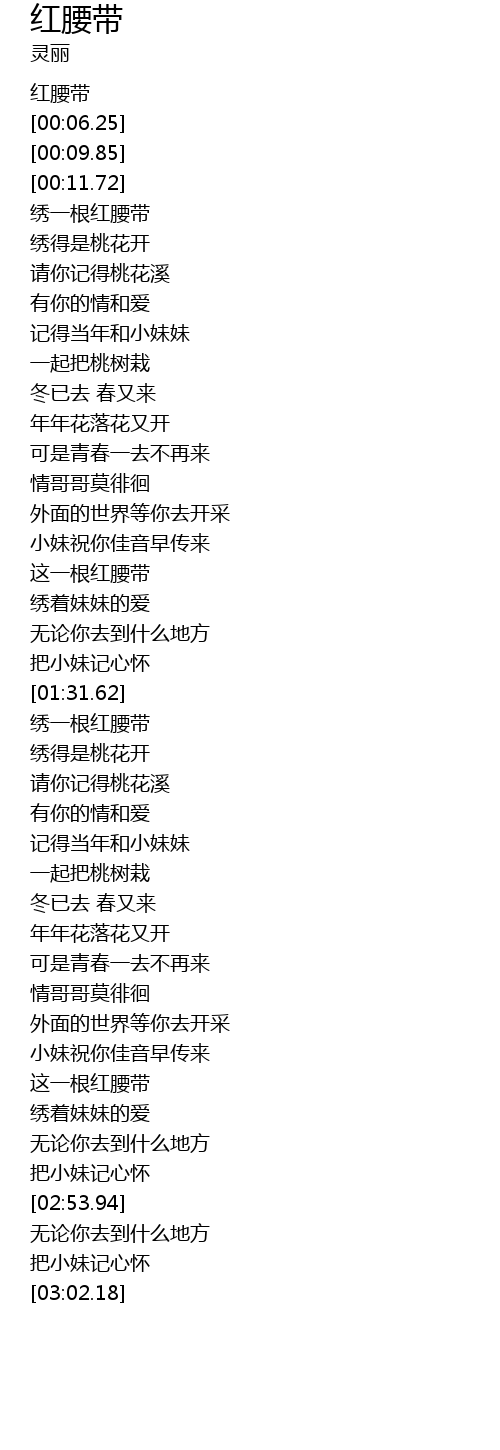| [00:17.83] | xiù yī gēn hóng yāo dài |
