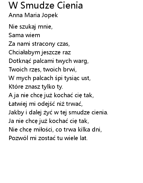 | Jakby i dalej żyć w tej smudze cienia. | |