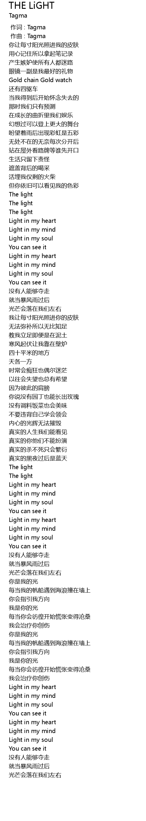 | [00:00.000] | 作词 : Tagma |