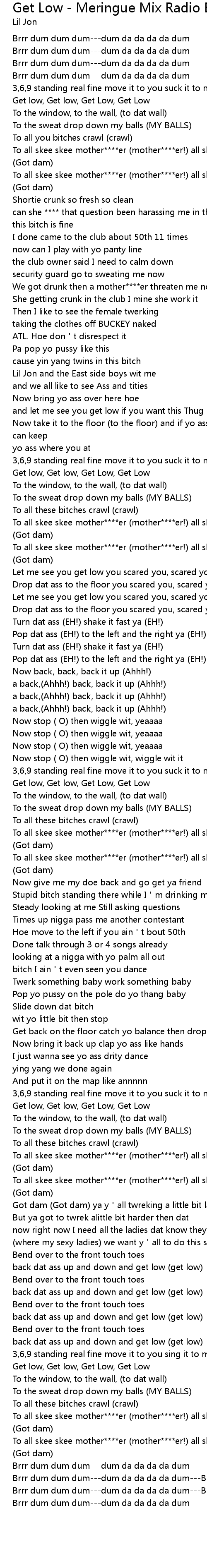 | [01:40.36] | Get low, Get low, Get Low, Get Low |
