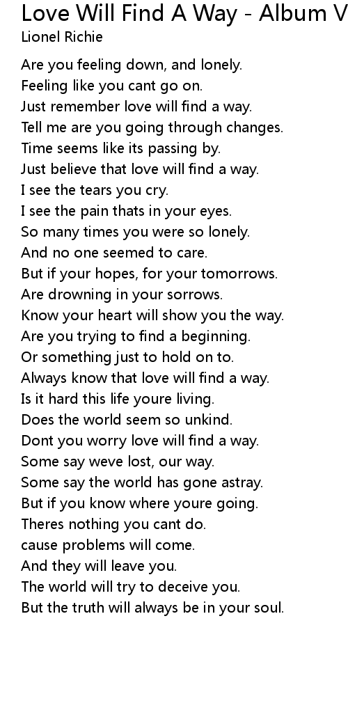 Dont you worry love will find a way. |