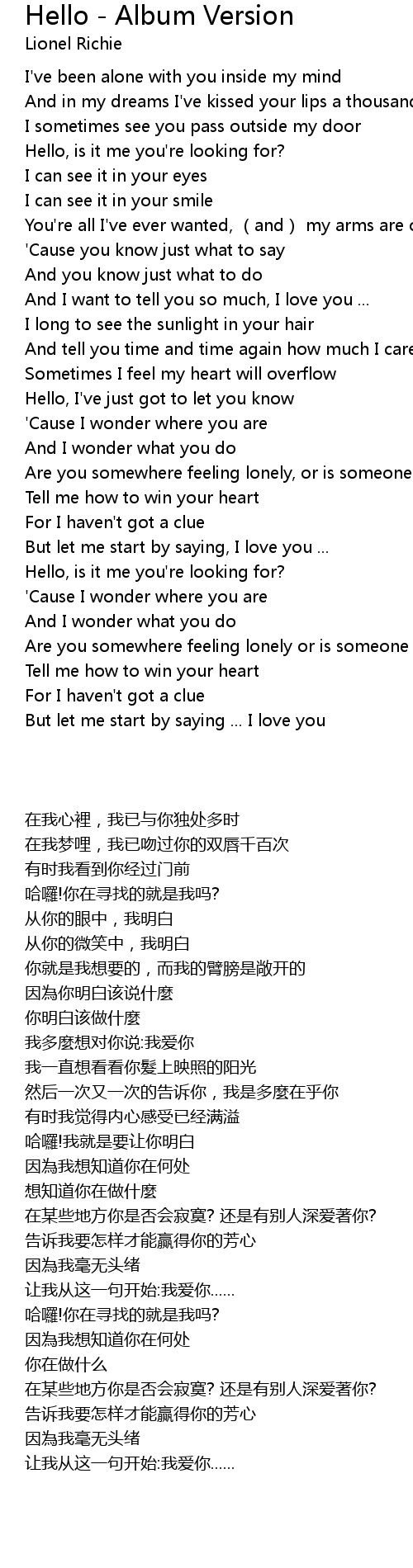 | [00:38.810] | Hello, is it me you' re looking for? |
