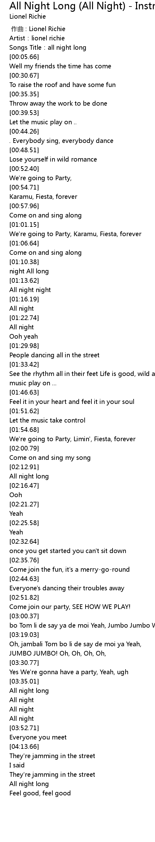 | [00:03.11] | Songs Title: all night long |