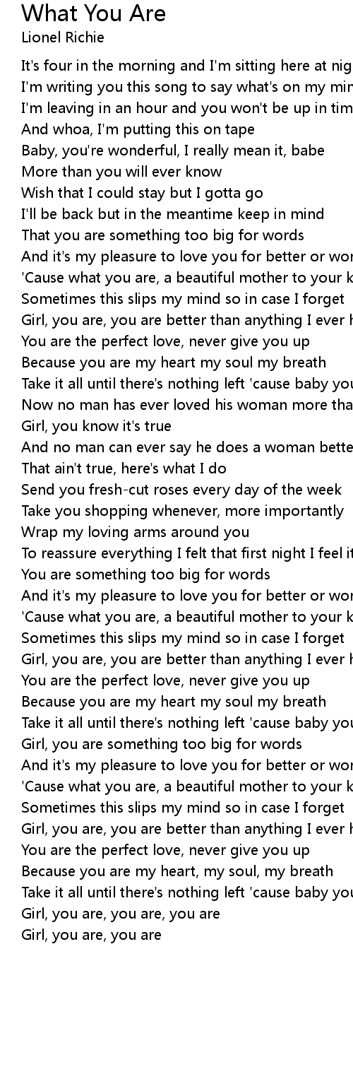 Girl, you are, you are, you are |