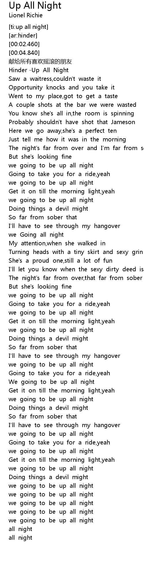 | [00:40.803] | The night' s far from over and I' m far from sober |