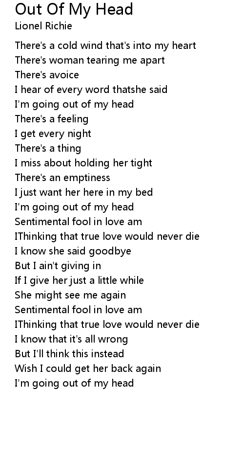 I'm going out of my head |