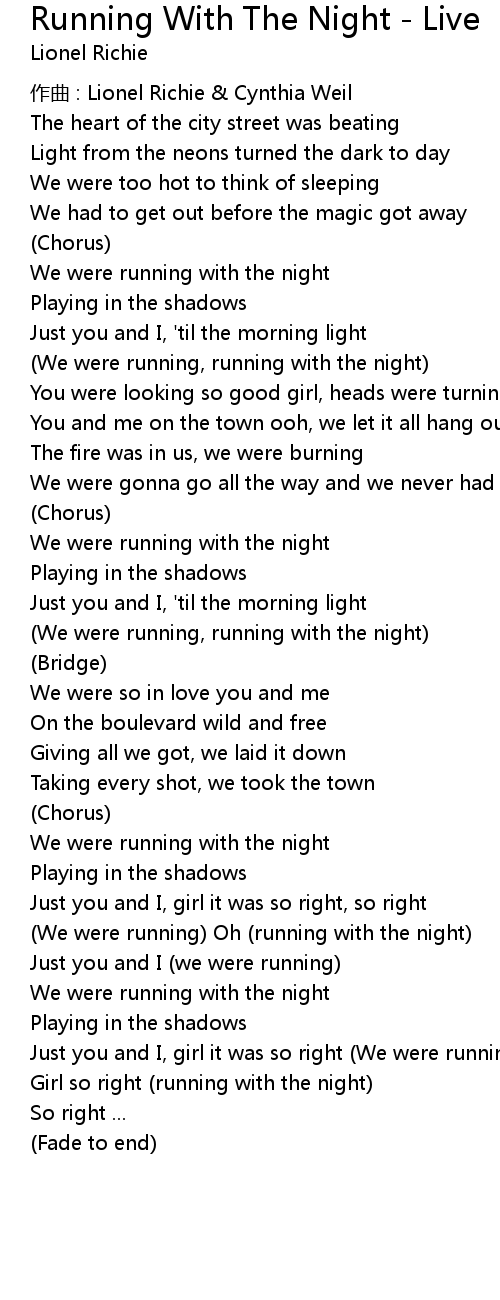 | zuò qǔ : Lionel Richie Cynthia Weil | |