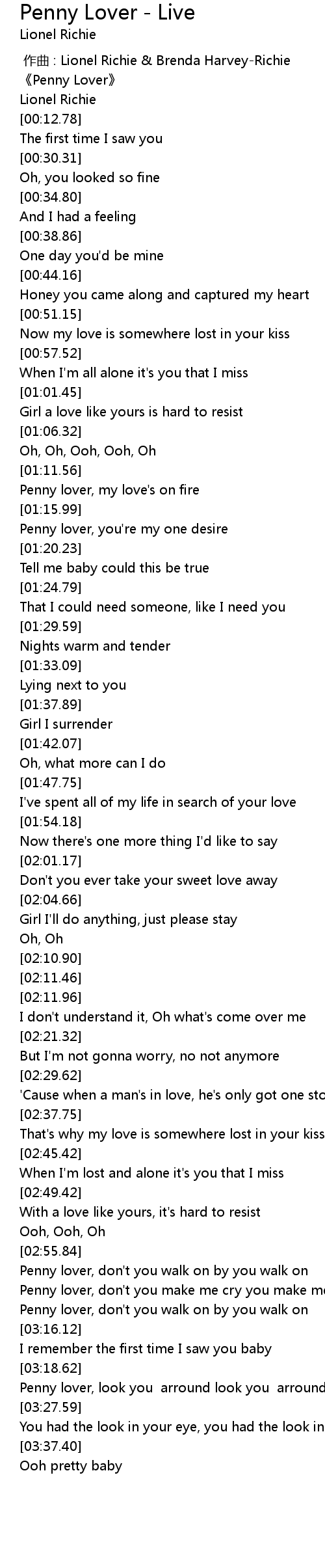| [03:21.54] | Penny lover, look you arround look you arround my love my love |