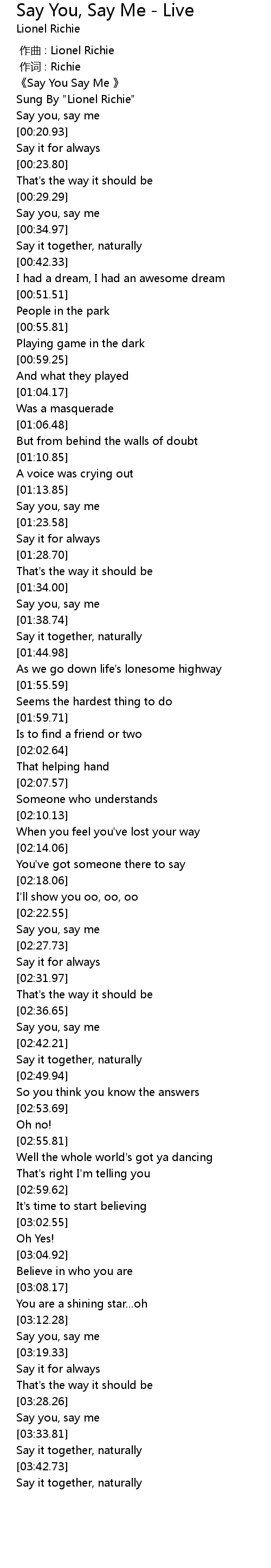 | [00:00.00] | zuò qǔ : Lionel Richie |