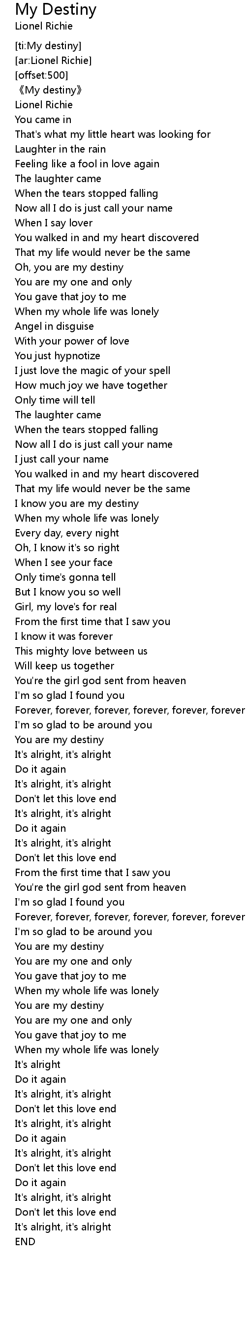 | [02:36.30] | You are my destiny |