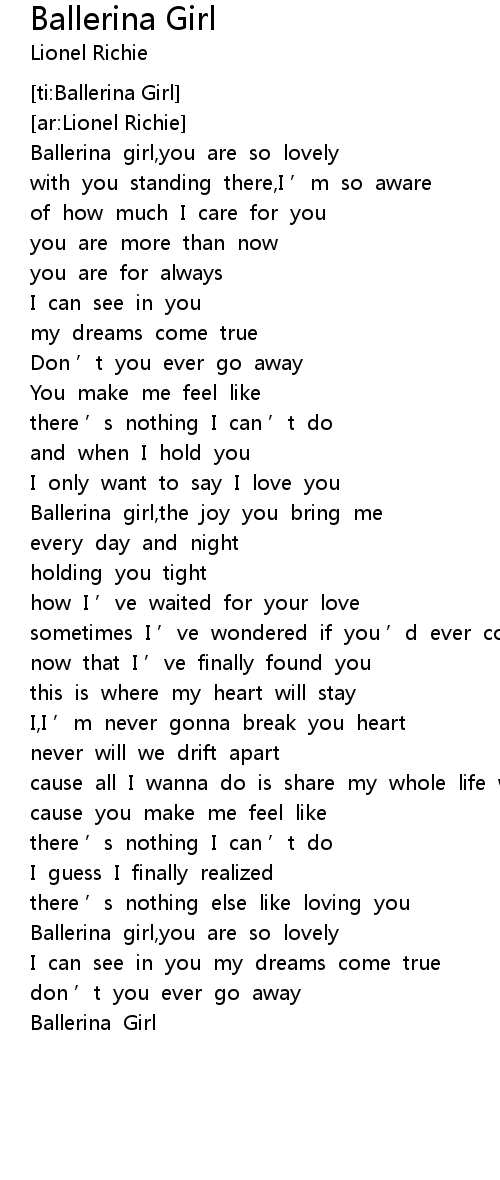 | [00:10.76] | Ballerina girl, you are so lovely |