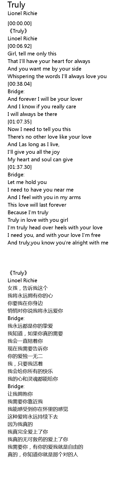 | [00:00.83] | 《Truly》 |