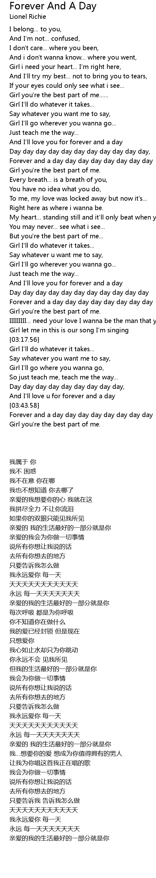 And I'll love u for forever and a day |