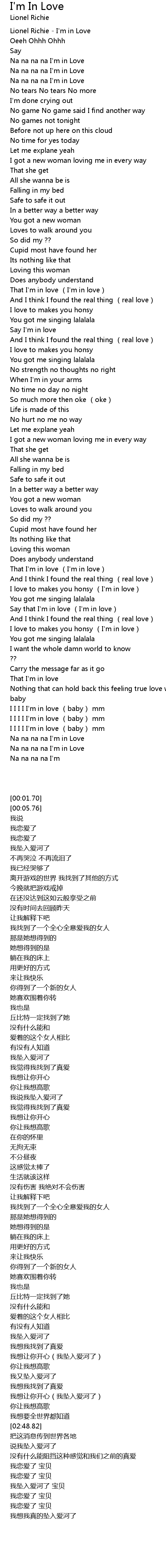 | [00:01.70] | Lionel Richie I' m in Love |