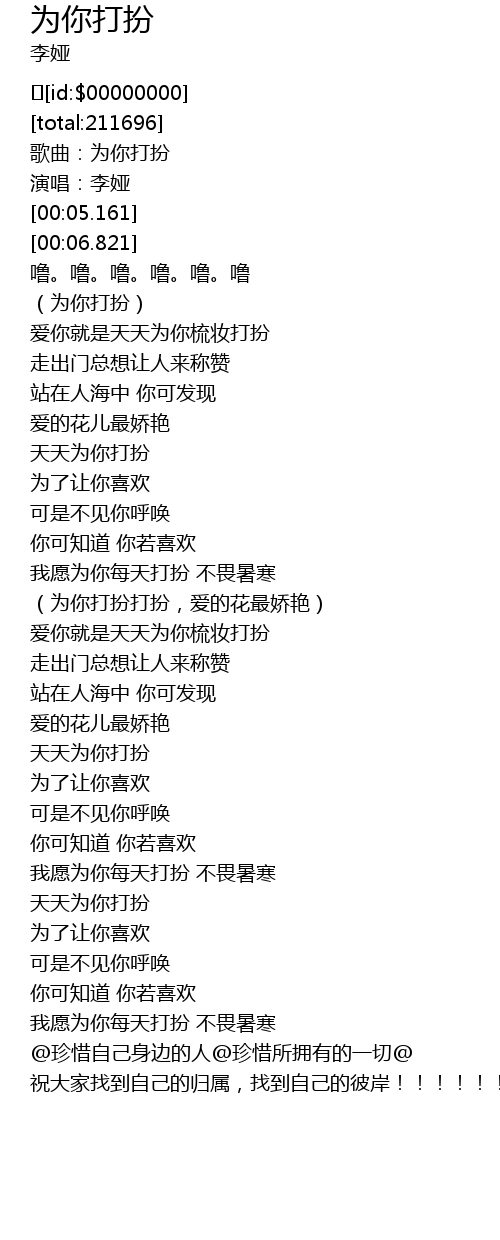| [00:17.364] | (为你打扮) |