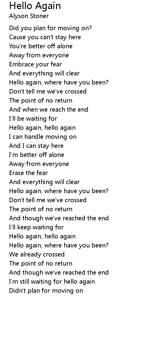 Hello again, hello again |
