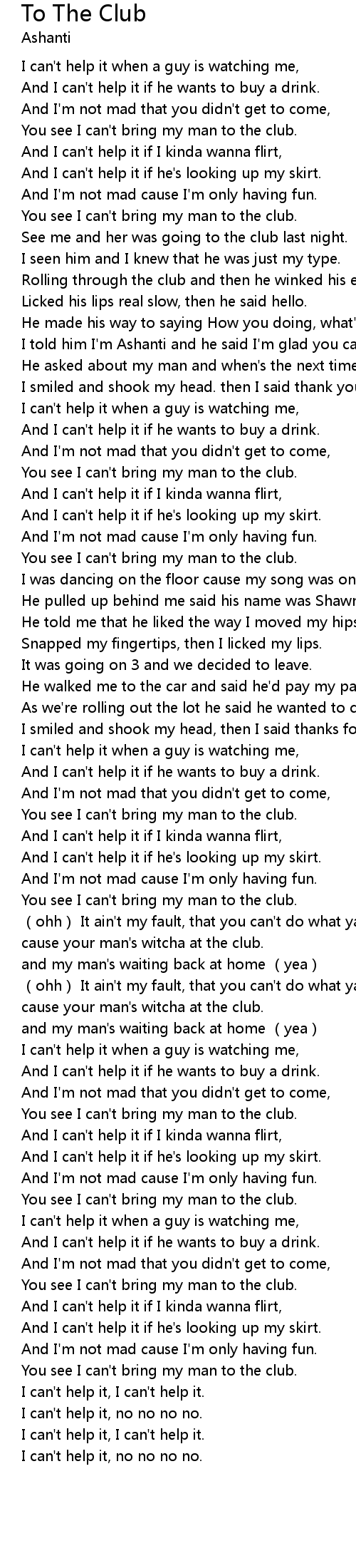 | [00:52.71] | You see I can' t bring my man to the club. |