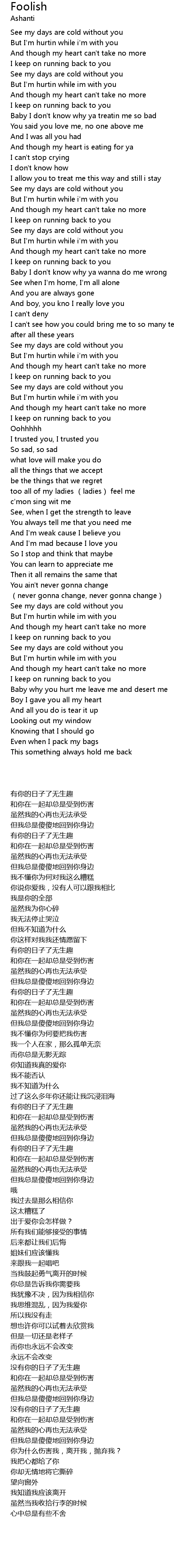 | [02:41.58] | See my days are cold without you |