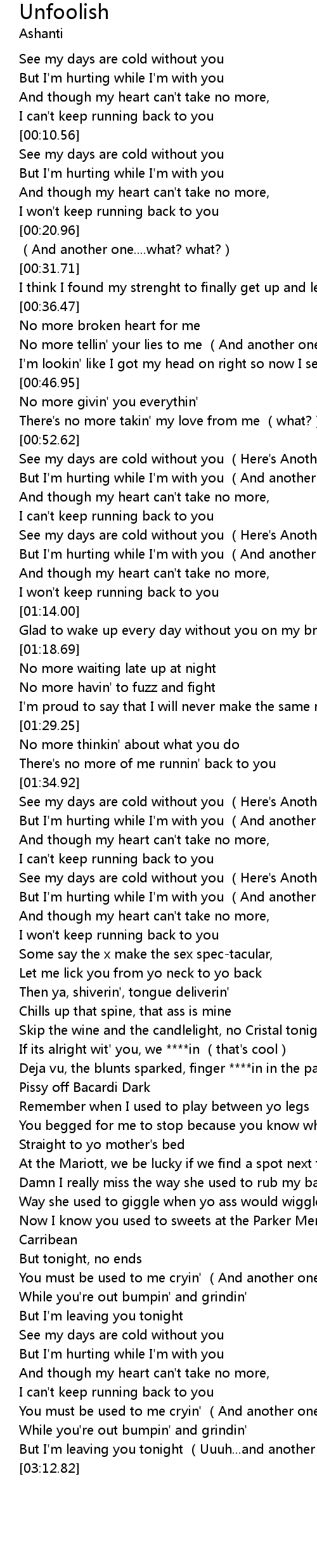 | [01:46.62] | See my days are cold without you (Here's Another one) |