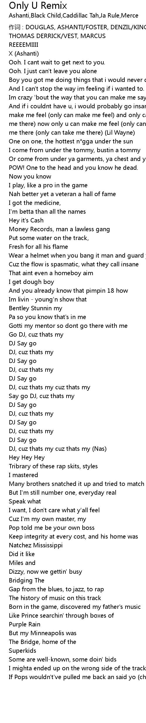 | 作词 : DOUGLAS, ASHANTI/FOSTER, DENZIL/KING, JAY A/LORENZO, IRVING/MC ELROY, THOMAS DERRICK/VEST, MARCUS | |