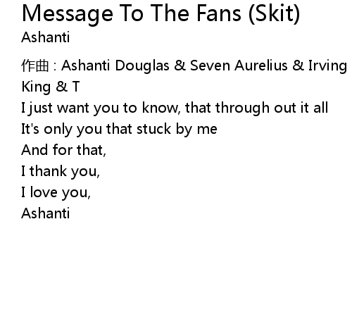 | Song | Message To The Fans (Skit) |