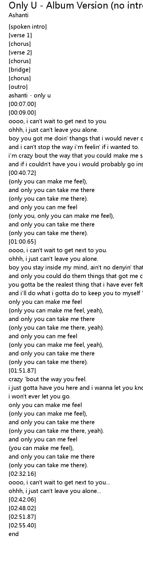 | [00:00.00] | ashanti - only u |