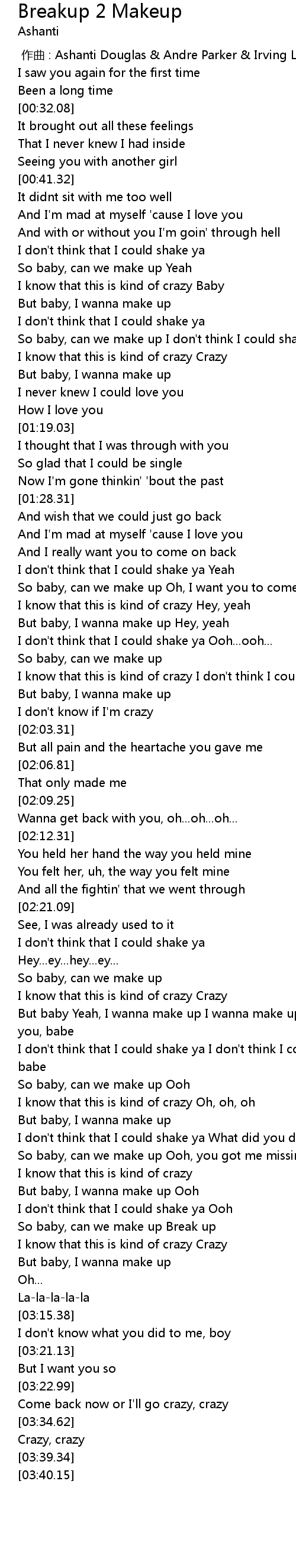 | [00:00.00] | 作曲 : Ashanti Douglas & Andre Parker & Irving Lorenzo |